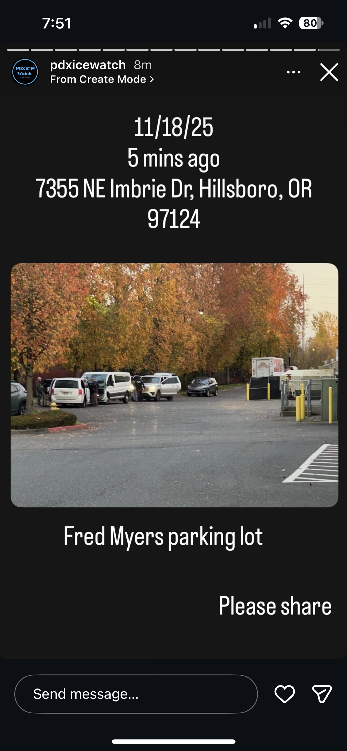 this report is unconfirmed , photo appears to be from a prior incident and not current | TUE NOV 18 08:09:37 PST 2025 (PST) |